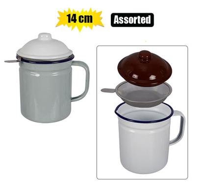 Oil pot enamel 14cm w/strainer